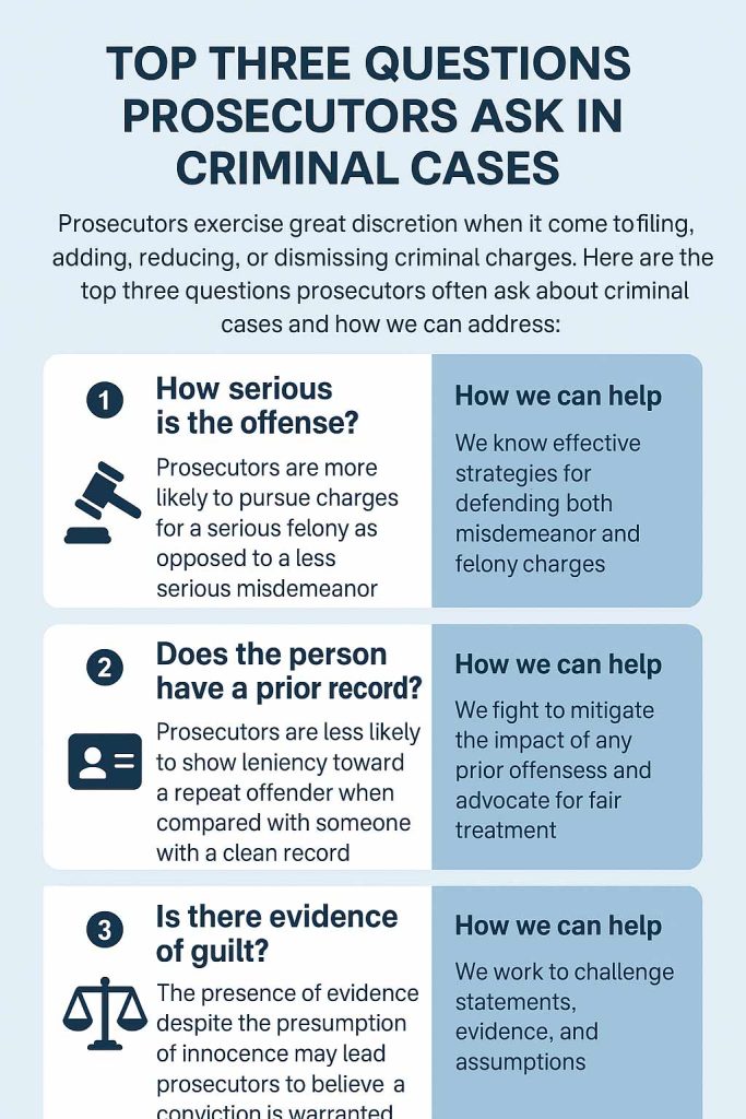Not always—but they’re more likely to do so if a defendant is rearrested, fails to appear in court, or is perceived as uncooperative. Some prosecutors start with a harsh offer to test the defense’s strength or push for a quick plea. We work to humanize our clients, present strong legal arguments, and challenge the assumptions that fuel overly aggressive plea offers.